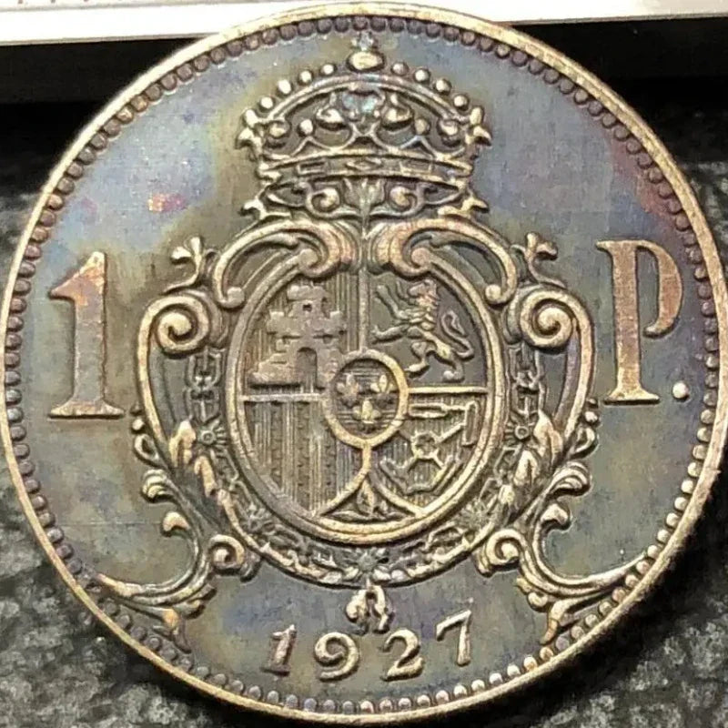 Detailed reproduction of the rare 1927 trial strike 1 Peseta coin