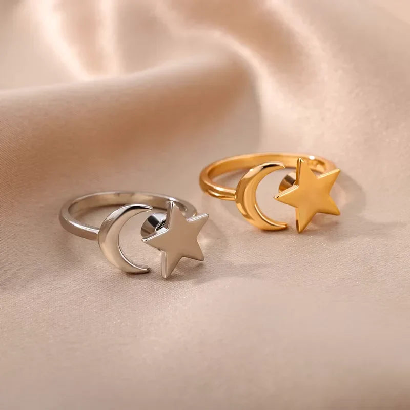 Anti-Stress Fidget Spinner Rings for Women – Stainless Steel Sunflower & Sun Star Design